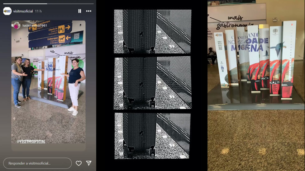 A Fundação de Turismo (Fundtur MS) nos lançou o desafio de criar um ponto de ativação de alto impacto no Aeroporto de Campo Grande. O objetivo era claro: gerar engajamento orgânico nas redes sociais, transformando visitantes em promotores do destino. Em um mundo onde cada momento é compartilhável, a solução foi apostar na arte anamórfica para converter o espaço de passagem em uma experiência "instagramável" inesquecível. Esta técnica de ilusão de óptica cria uma imagem 3D impactante que só é revelada no ponto exato da foto, unindo a icônica frase "Campo Grande, Nossa Cidade Morena" a elementos da fauna local, como o peixe Pacu e as araras. O projeto, hoje instalado, tornou-se um destaque no aeroporto, usando uma instalação multi-camadas que se alinham para formar a ilusão 3D, cumprindo com sucesso o objetivo de celebrar a identidade sul-mato-grossense de forma inovadora e gerando engajamento espontâneo.